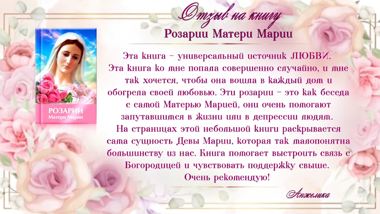 Кроме чтения Посланий рекомендуется каждодневная духовная работа над собой и со своими несовершенствами. В помощь духовной работе созданы Розарии, фильмы, с которыми можно ознакомиться в соответствующих разделах сайта.